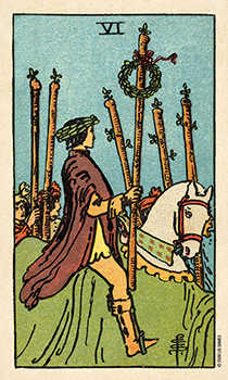 A Full Moon of fighting energy, winning energy, scoring victories. The Sun in Leo says, ME, myself and I, with the bombast or the innocence of a child. But the Six of Wands says, the victor may wear the laurel wreath, but he did not do it alone, and the victory did not come quick or easy. It was worked for. Earned. The Six of Wands also talks about transport issues, literally, travel AND the vehicles themselves. MOTs, cars, vans, motorbikes and of courses, horses, and at this coming New Moon we will be entering a year of the Fire Horse.