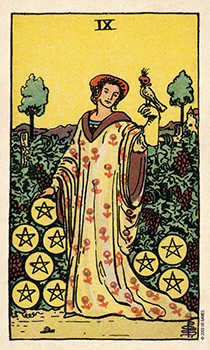 The third card, the Nine of Pentacles is ruled by Virgo. The card nicknamed “Luxury”…this comfort has been hard earned through consistent effort. Virgo in turn is ruled by Mercury which is currently in Aquarius. A theme therefore of devotion, duty and attention to detail in tending to “our garden.” Also health matters. A Full Moon In Leo speaks, not only of our inner diva and personal projects, but of a time of great focus upon the wellbeing and happiness of what we love; new things, young things, of children and grandchildren.