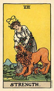Today is the Aquarian Full Snow Moon in Leo at 13 degrees, and this is typical of the Tarot. I drew 3 Tarot cards inviting comment about the Full Moon and drew the Strength, the Six of Wands and the Nine of Pentacles. The Strength card, ruled by Jupiter and correlating with the zodiac sun sign of Leo (as does The Sun card) The Six of Wands which correlates with the second decan of Leo at 13 degrees.