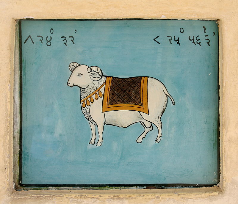 Below, in this rather humorous and charming illustration from India, is surely the least ever fiery ram of a wild sheep.