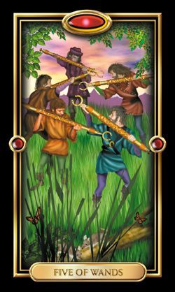 The Five of Wands, a card of competition in crowded markets suggested Mustard was prone to stress and became anxious in competitions. He didn’t like loud noises. If he had been a show jumper, this would have suggested a fear of jumping a 5 barred fence. I suggested rubbing a little non-alcohol Rescue Remedy behind his ears or on his nose (not on the sensitive bits) the next time they competed, which was the following weekend.
